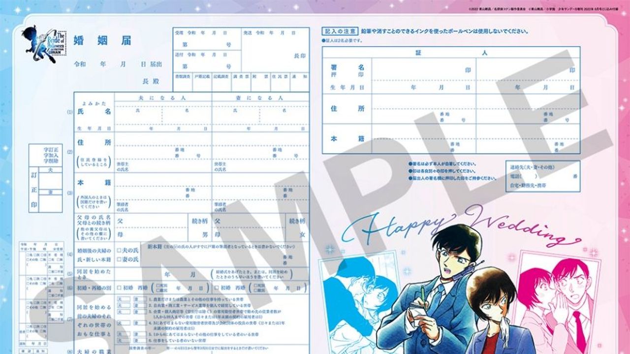 @YUKI_RUKA_LOVEこれから婚姻届を提出する方で、コナン好きなら最高かも(*˘︶˘*).。.:*♡ 少年サンデーSの付録に婚姻届 2022年4月25日 https://t.co/ZFhG2mR406