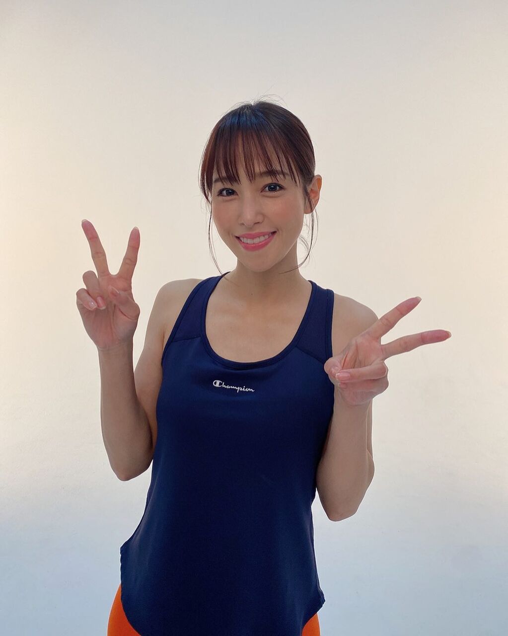 鷲見さんは、ファッションブランド「チャンピオン」のタンクトップを着用。笑顔のまま両手でピースをするという、微笑ましい投稿になっていました。